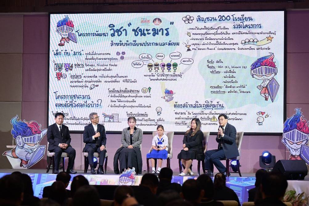 นพ.พงศ์เทพ วงศ์วัชรไพบูลย์ ผู้จัดการกองทุน สสส. เปิดเผยว่า เด็กและเยาวชนยุคนี้เปรียบเสมือนมี “มาร” อยู่รอบตัว ถูกชักชวนให้เข้าไปเกี่ยวข้องกับบุหรี่ไฟฟ้า เครื่องดื่มแอลกอฮอล์ และพนันออนไลน์ โดยในปี 2567 พบว่า เยาวชนสูบบุหรี่ไฟฟ้าเพิ่มขึ้นถึง 5.3 เท่า เนื่องจากกลยุทธ์การตลาดแบบล่าเหยื่อที่ออกแบบผลิตภัณฑ์ให้ล่อใจเด็ก เช่น “ทอยพอด” หรือ “พอดจมูก” ที่ทำให้เด็กเข้าใจผิดว่าไม่อันตราย ทั้งที่ในบุหรี่ไฟฟ้า 1 แท่ง มีนิโคตินสูงเทียบเท่าการสูบบุหรี่ถึง 20 มวน