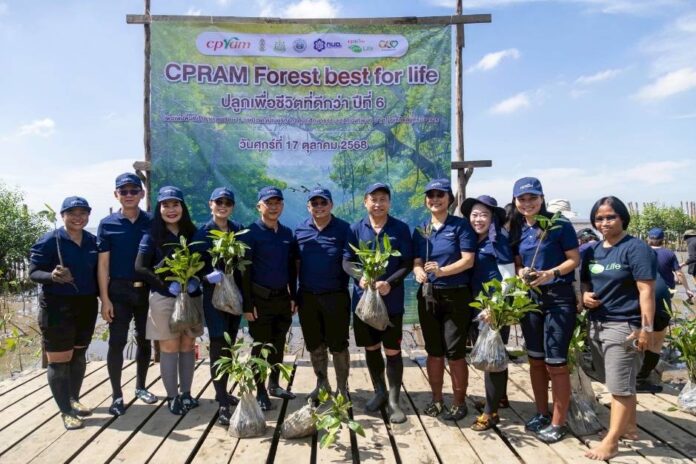 นายปิยโชค ปิยางสุ รองกรรมการผู้จัดการอาวุโส พร้อมด้วยผู้บริหาร และพนักงานจิตสาธารณะ บริษัท ซีพีแรม จำกัด (ลาดกระบัง) ร่วมกับ กรมพลาธิการทหารบก สำนักทรัพยากรทางทะเลและชายฝั่งที่ 2 และชุมชนรอบนิคมลาดกระบัง จัดโครงการ CPRAM Forest best for life #ปลูกเพื่อชีวิตที่ดีกว่า ปีที่ 6 ประจำปี 2568 ภายใต้โครงการ CPRAM Green Life #ปลูกเพื่อโลกยั่งยืน ในการนี้ นายดิเรก ส่งเสริม ผู้อำนวยการส่วนทรัพยากรธรรมชาติ พร้อมด้วยนางเกสนีย์ ทรัพย์โชคอนันต์ ผู้อำนวยการส่วนทรัพยากรน้ำ สำนักงานทรัพยากรและสิ่งแวดล้อมจังหวัดสมุทรปราการ ให้เกียรติกล่าวต้อนรับและร่วมเปิดงาน โดยกิจกรรมในครั้งนี้ ได้ร่วมปลูกต้นไม้ 10,000 ต้น เพื่อฟื้นฟูและอนุรักษ์ระบบนิเวศชายฝั่ง ซึ่งป่าชายเลนถือเป็นทรัพยากรธรรมชาติที่มีคุณค่าต่อการเพาะพันธุ์สัตว์น้ำ และเป็นกำแพงธรรมชาติในการป้องกันการกัดเซาะชายฝั่ง ซึ่งดำเนินการต่อเนื่องและยังเป็นส่วนสำคัญที่ช่วยให้ศูนย์ศึกษาธรรมชาติกองทัพบกฯ (บางปู) ได้ขึ้นทะเบียนเป็นอุทยานมรดกแห่งอาเซียน (ASEAN Heritage Park: AHP) และช่วยส่งเสริมการอนุรักษ์ทรัพยากรธรรมชาติและสิ่งแวดล้อมของประเทศให้มีความยั่งยืนต่อไป ณ ศูนย์ศึกษาธรรมชาติกองทัพบกฯ (บางปู) จังหวัดสมุทรปราการ