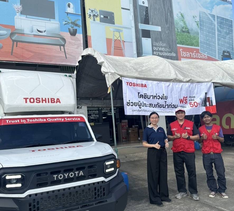 เมื่อสถานการณ์น้ำท่วมครั้งใหญ่ในพื้นที่ภาคใต้ส่งผลกระทบเป็นวงกว้าง ทั้งบ้านเรือนและทรัพย์สินของประชาชนได้รับความเสียหายจำนวนมาก โตชิบา ประเทศไทย จึงประกาศมาตรการเร่งด่วนช่วยผู้บริโภคให้กลับมาใช้ชีวิตได้ตามปกติเร็วที่สุด โดยเปิดบริการตรวจเช็กและซ่อมแซมเครื่องใช้ไฟฟ้าโตชิบาที่ได้รับผลกระทบจากน้ำท่วม ฟรีค่าแรง ดำเนินการโดยทีมช่างผู้เชี่ยวชาญ เพื่อให้มั่นใจได้ว่าการใช้งานหลังซ่อมแซมมีความปลอดภัยและได้มาตรฐาน