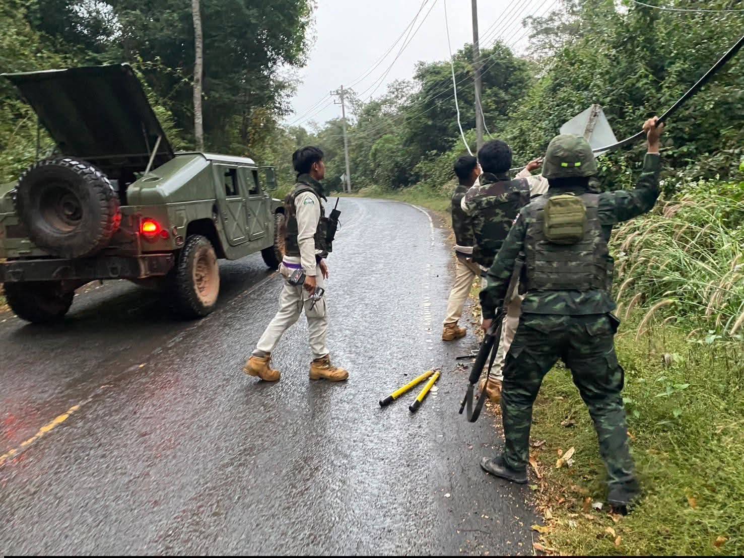 ทหารไทยจากกองกำลังประจำพื้นที่ได้จัดชุดคุ้มกันตลอดขั้นตอน พร้อมประสานเส้นทางปลอดภัย และเร่งเคลียร์พื้นที่จุดเสี่ยงเพื่อให้ช่างสามารถเข้าไปซ่อมแซมระบบไฟฟ้าได้เร็วที่สุด ท่ามกลางสภาพแวดล้อมที่เต็มไปด้วยฝุ่นควันและเสียงระเบิดไกล ๆ ไม่ขาดสาย