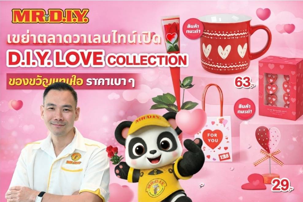 มิสเตอร์. ดี.ไอ.วาย. ผู้นำธุรกิจค้าปลีกอุปกรณ์ตกแต่งบ้านและสินค้าไลฟ์สไตล์ ต้อนรับเทศกาลแห่งความรัก ชวนส่งต่อความรู้สึกดี ๆ ผ่านสินค้า “D.I.Y. LOVE COLLECTION รวมไอเดียของขวัญแทนใจ” คัดสรรของขวัญและของตกแต่งรับวาเลนไทน์รวม 38 รายการ ในราคาถูกคุ้มเสมอ (Always Low Prices) ให้ลูกค้าชาวไทยได้เลือกชอปเติมเต็มโมเมนต์พิเศษ ณ ร้านมิสเตอร์. ดี.ไอ.วาย. สาขาที่ร่วมรายการ ตั้งแต่วันที่ 14 มกราคม – 15 กุมภาพันธ์ 2569
