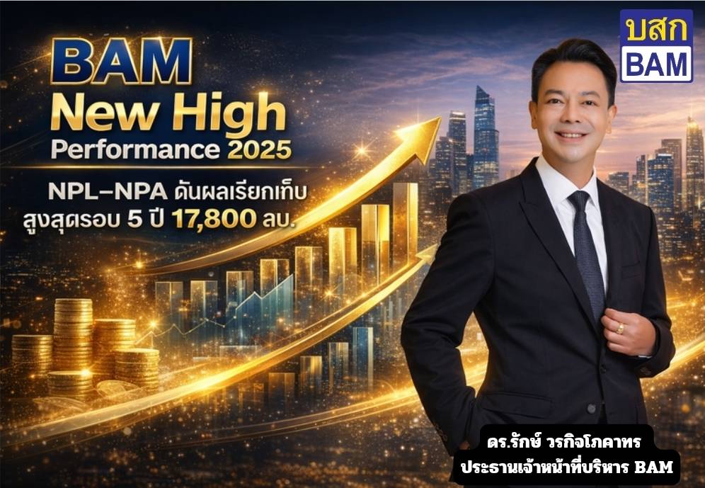 BAM ฝ่ามรสุมเศรษฐกิจ ทำผลงานปี 68 New High สร้างผลเรียกเก็บสูงสุดในรอบ 5 ปี ทะลุเป้าหมาย 17,800 ล้านบาท โดยมาจากผลงานทั้งทางด้าน NPL และทาง NPA พร้อมชูโมเดลยกระดับการพัฒนาองค์กร 3 ด้านสำคัญ คือ การพัฒนา Business Model การปรับปรุงกระบวนการทำงาน และการพัฒนาทรัพยากรบุคคล เพื่อสร้างการเติบโตขององค์กรอย่างยั่งยืน