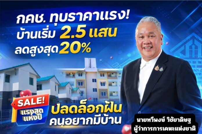 กคช. อัดแคมเปญแรง! ลดราคาบ้าน 5–20% เริ่ม 2.5 แสนบาท ดันคนรายได้น้อย–กลางมีบ้านง่ายขึ้น