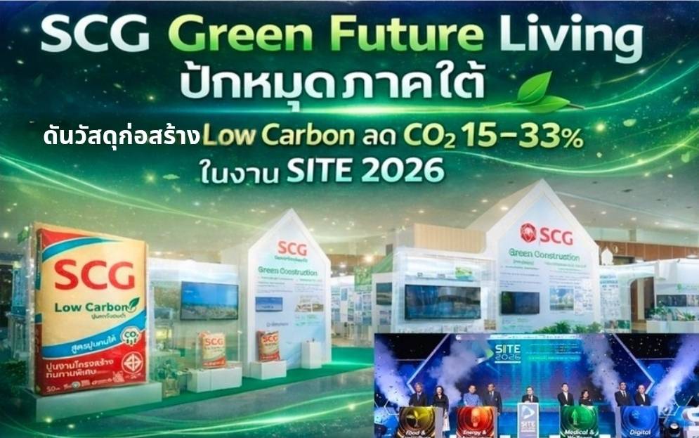 SCG ตอกย้ำบทบาทผู้นำด้านนวัตกรรมวัสดุก่อสร้างคาร์บอนต่ำ ยกทัพสินค้าและโซลูชันเพื่อการก่อสร้างยุคใหม่และการอยู่อาศัยอย่างยั่งยืน ภายใต้แนวคิด “Green Future Living” ร่วมขับเคลื่อนเศรษฐกิจและยกระดับคุณภาพชีวิตของภาคใต้ ในงาน Southern Innovation Technology Expo 2026 (SITE 2026) มหกรรมแสดงนวัตกรรมและเทคโนโลยีที่ใหญ่ที่สุดของภาคใต้ ซึ่งจัดขึ้นระหว่างวันที่ 5–8 กุมภาพันธ์ 2569 ณ ศูนย์ประชุมนานาชาติฉลองสิริราชสมบัติครบ 60 ปี มหาวิทยาลัยสงขลานครินทร์