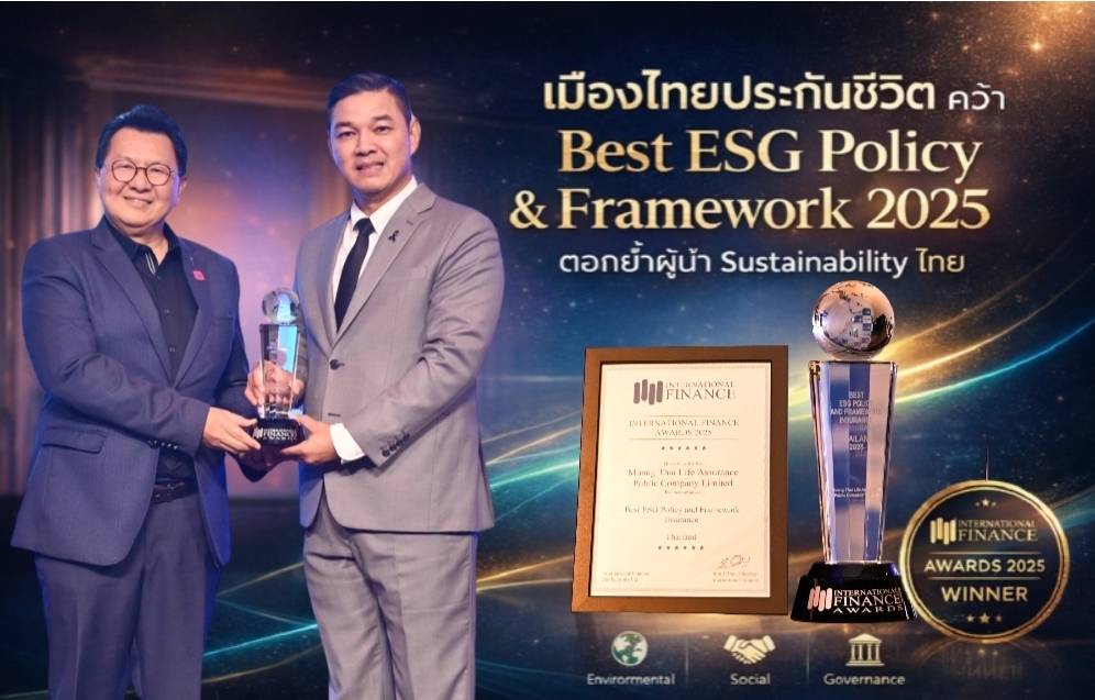 บริษัท เมืองไทยประกันชีวิต จำกัด (มหาชน) สร้างความภาคภูมิใจให้กับวงการประกันชีวิตไทย หลังคว้ารางวัล Best ESG Policy and Framework – Insurance, Thailand จากเวที International Finance Awards 2025 ซึ่งจัดโดย International Finance Magazine สื่อการเงินและเศรษฐกิจชั้นนำจากสหราชอาณาจักร สะท้อนความเป็นเลิศในการพัฒนา นโยบายและกรอบการดำเนินงานด้าน ESG (Environmental, Social and Governance) ที่มีความครอบคลุม เป็นระบบ โปร่งใส และสามารถนำไปปฏิบัติได้จริงในทุกมิติของธุรกิจ