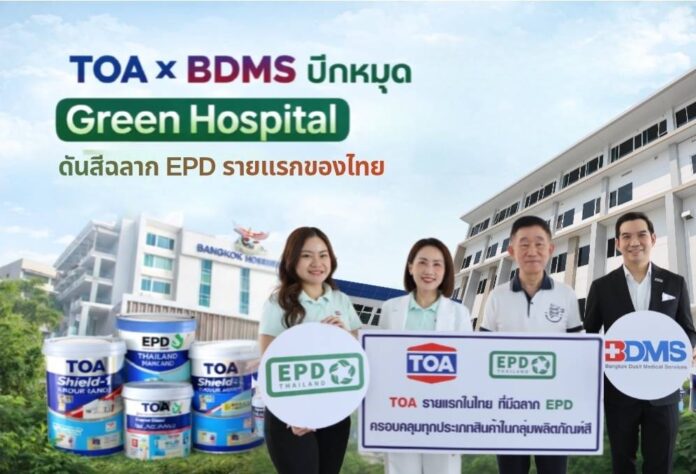 ล่าสุด TOA เดินหน้าสร้างความเชื่อมั่นในฐานะ Green Partner โดยได้รับความไว้วางใจจาก บริษัท กรุงเทพดุสิตเวชการ จำกัด (มหาชน) หรือ BDMS ผู้นำด้านบริการสุขภาพ เลือกใช้ผลิตภัณฑ์สี TOA ที่ผ่านการรับรองฉลาก EPD ใน โรงพยาบาลกรุงเทพหัวหิน เป็นแห่งแรกของกลุ่ม