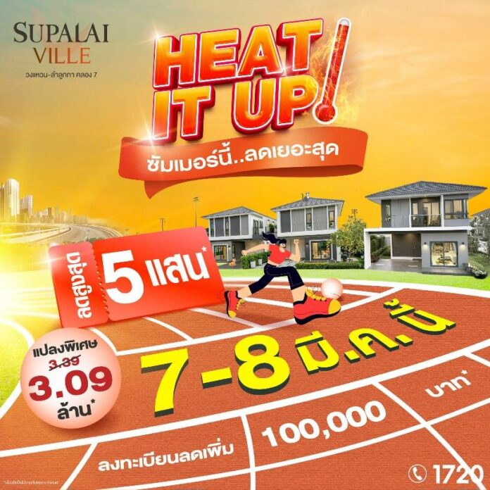 บริษัท บริษัท ศุภาลัย จำกัด (มหาชน) เดินหน้าอัดแคมเปญร้อนแรงรับซัมเมอร์ “HEAT IT UP ซัมเมอร์นี้ ลดเยอะสุด!” ชวนครอบครัวที่กำลังมองหาบ้านพร้อมอยู่บนทำเลศักยภาพโซนลำลูกกา–วงแหวน ร่วมสัมผัสข้อเสนอสุดคุ้มที่โครงการ ศุภาลัย วิลล์ วงแหวน–ลำลูกกา คลอง 7 คัดสรรบ้านเดี่ยวและบ้านแฝดแปลงพิเศษ พร้อมเข้าอยู่ทันที ในราคาพิเศษเฉพาะวันที่ 7–8 มีนาคมนี้เท่านั้น*