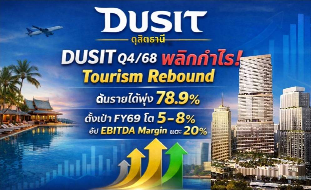 บริษัท ดุสิตธานี จำกัด (มหาชน) เผย Q4/68 พลิกกำไร รับไฮซีซันท่องเที่ยว ดันรายได้พุ่ง 78.9%