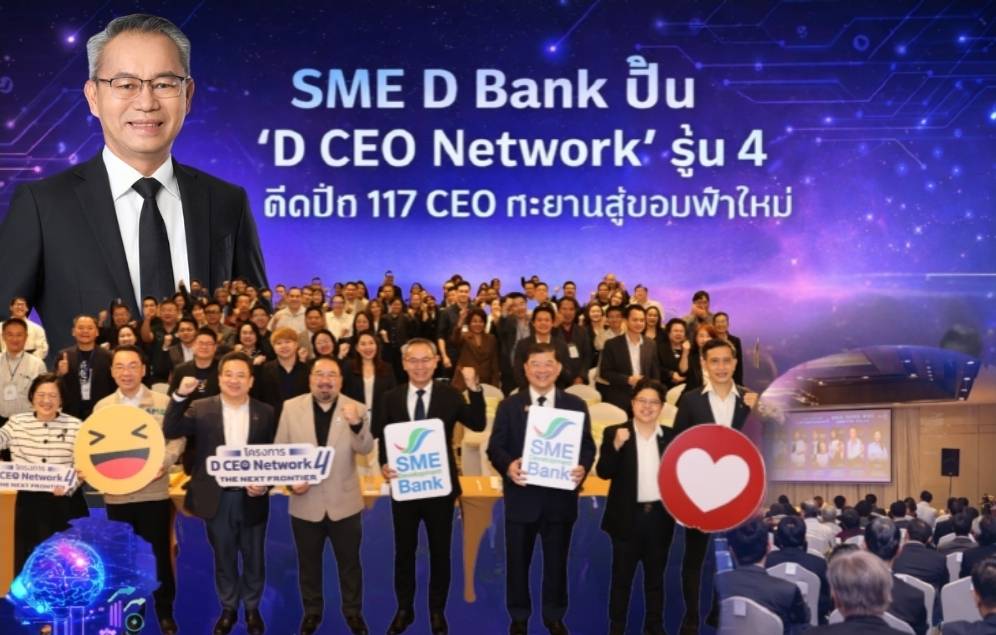 กรุงเทพฯ – ธนาคารพัฒนาวิสาหกิจขนาดกลางและขนาดย่อมแห่งประเทศไทย หรือ SME D Bank เดินหน้าสร้างผู้นำธุรกิจเอสเอ็มอียุคใหม่ ผ่านโครงการ “D CEO Network” รุ่นที่ 4 ประจำปี 2569 ภายใต้แนวคิด “ทะยานสู่ขอบฟ้าใหม่” (The Next Frontier) โดยมีผู้ประกอบการระดับ CEO ทั้งเจ้าของกิจการ ผู้บริหาร และทายาทธุรกิจ สำเร็จหลักสูตรรวม 117 กิจการ