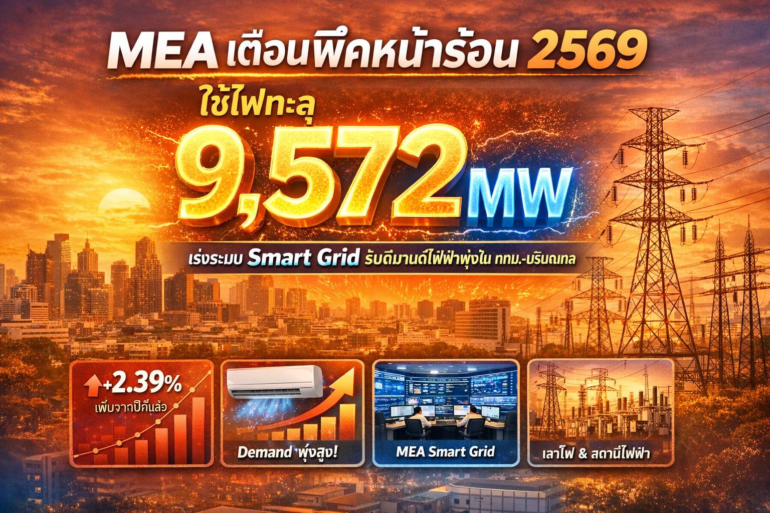 การใช้ไฟฟ้าในช่วงฤดูร้อนปี 2569 มีแนวโน้มพุ่งสูงขึ้นต่อเนื่อง สอดคล้องกับสภาพอากาศที่ร้อนจัดและการขยายตัวทางเศรษฐกิจ ส่งผลให้การไฟฟ้านครหลวง (MEA) ต้องเร่งเตรียมความพร้อมของระบบจำหน่ายไฟฟ้าเพื่อรองรับความต้องการใช้พลังงานที่เพิ่มขึ้น โดยคาดการณ์ว่าความต้องการใช้ไฟฟ้าสูงสุด (Maximum Demand) ในปีนี้จะอยู่ที่ 9,572 เมกะวัตต์ เพิ่มขึ้นจากสถิติสูงสุดของปี 2568 อีก 224 เมกะวัตต์ หรือร้อยละ 2.39