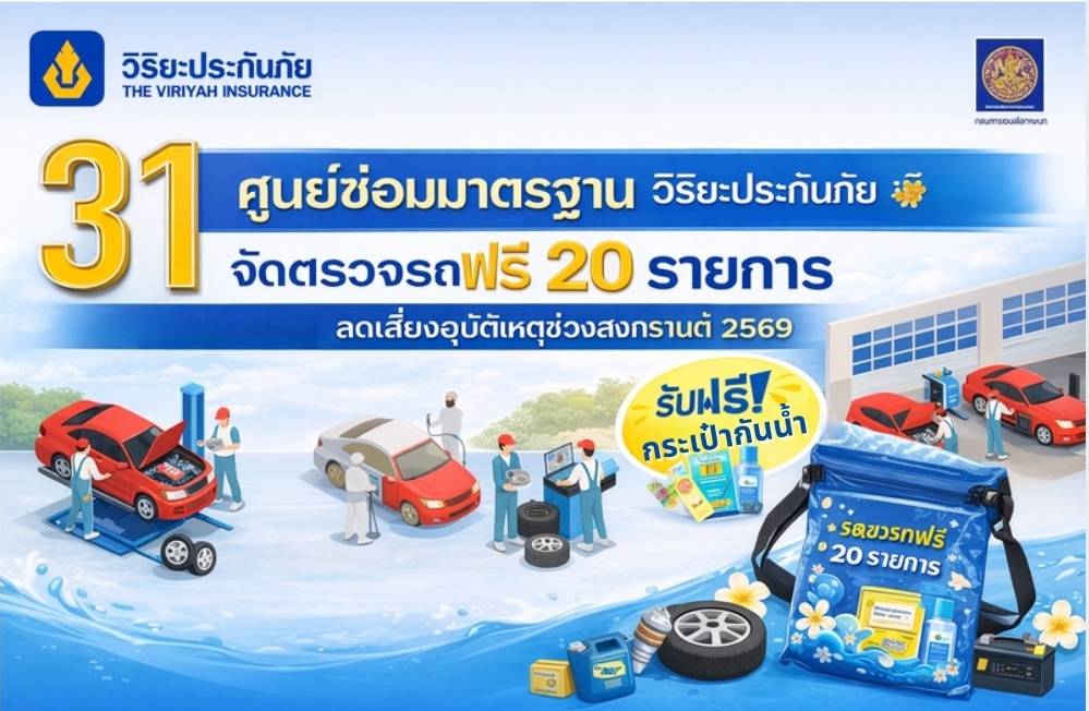 กรุงเทพฯ – บริษัท วิริยะประกันภัย จำกัด (มหาชน) ร่วมกับ กรมการขนส่งทางบก จัดกิจกรรม “ตรวจรถฟรี ขับขี่ปลอดภัย” เพื่อรณรงค์ให้ประชาชนตระหนักถึงความสำคัญของการตรวจสภาพรถยนต์ก่อนออกเดินทางในช่วงเทศกาลสงกรานต์ 2569 มุ่งลดความเสี่ยงการเกิดอุบัติเหตุและเสริมสร้างความปลอดภัยบนท้องถนน โดยเปิดให้บริการตรวจสภาพรถยนต์เบื้องต้นฟรี 20 รายการ พร้อมมอบ “กระเป๋าสงกรานต์กันน้ำ” เป็นของที่ระลึก สำหรับผู้ที่นำรถเข้ารับบริการ ณ ศูนย์ซ่อมมาตรฐานวิริยะประกันภัยในพื้นที่กรุงเทพฯ และปริมณฑล รวม 31 แห่ง ตั้งแต่วันนี้จนถึง 11 เมษายน 2569
