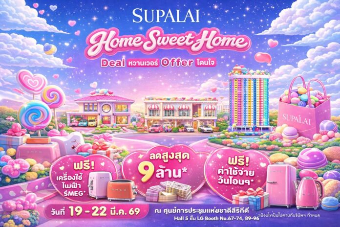 กรุงเทพฯ – บริษัท ศุภาลัย จำกัด (มหาชน) เดินหน้ากระตุ้นตลาดอสังหาริมทรัพย์ ส่งแคมเปญใหญ่ “SUPALAI HOME SWEET HOME” เอาใจคนอยากมีบ้านและคอนโดมิเนียม ด้วยข้อเสนอสุดคุ้ม “ดีลหวานเวอร์” ลดราคาสูงสุดถึง 9,000,000 บาท ภายในงานมหกรรมบ้านและคอนโดฯ ครั้งที่ 49 ระหว่างวันที่ 19-22 มีนาคม 2569 ณ ศูนย์การประชุมแห่งชาติสิริกิติ์ Hall 5 ชั้น LG