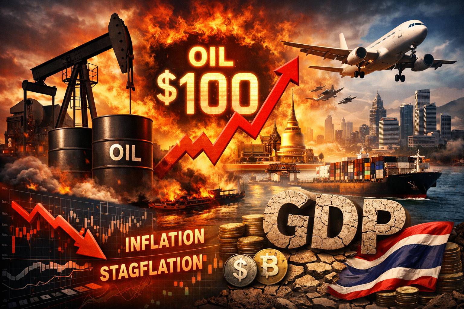 ในด้านการเงิน ค่าเงินดอลลาร์ที่แข็งค่าขึ้นสวนทางกับสกุลเงินเอเชีย รวมถึงเงินบาท ซึ่งประเทศไทยพึ่งพาการนำเข้าพลังงานสูง ยิ่งเพิ่มแรงกดดันต่อตลาดทุนและเศรษฐกิจโดยรวม พร้อมดันอัตราเงินเฟ้อให้เข้าใกล้กรอบบนของเป้าหมายธนาคารแห่งประเทศไทย และเพิ่มความเสี่ยงต่อภาวะ “Stagflation” หรือเศรษฐกิจชะลอตัวพร้อมเงินเฟ้อสูง