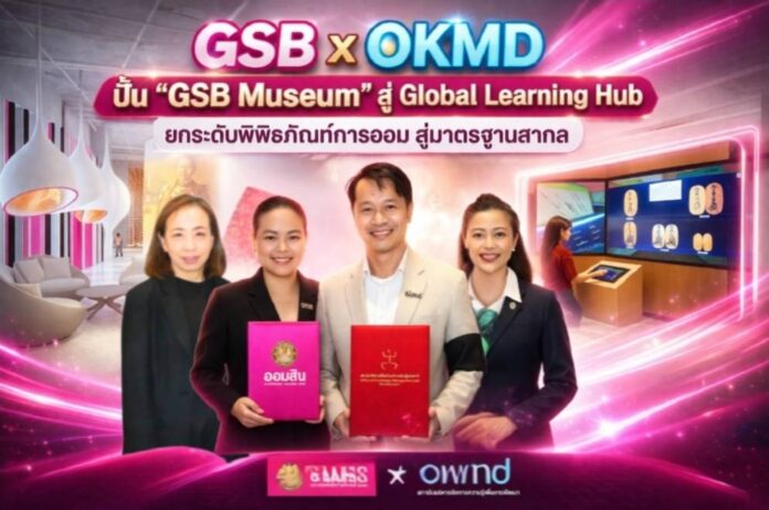 กรุงเทพฯ – ธนาคารออมสิน เดินหน้ายกระดับบทบาทจากสถาบันการเงินสู่ “ผู้สร้างวินัยทางการเงินของสังคม” ล่าสุดลงนามความร่วมมือกับสำนักงานบริหารและพัฒนาองค์ความรู้ (องค์การมหาชน) หรือ OKMD เพื่อพัฒนา “พิพิธภัณฑ์ออมสิน” (GSB Museum) ให้เป็นแหล่งเรียนรู้ด้านการออมทรัพย์ที่มีมาตรฐานในระดับสากล ภายใต้แนวคิด “Discovery Museum” ที่เน้นการเรียนรู้ผ่านประสบการณ์จริง