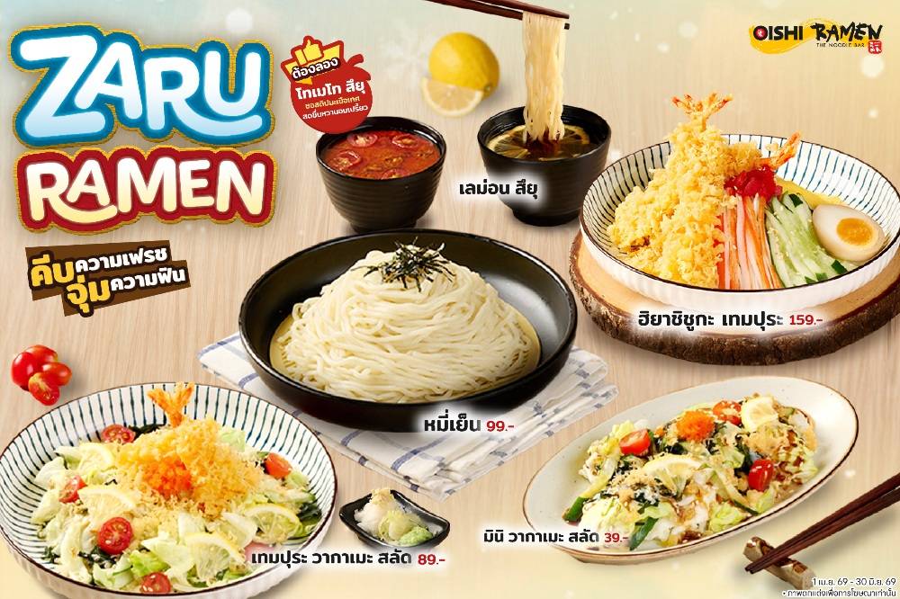 กรุงเทพฯ – โออิชิ ราเมน (OISHI RAMEN) เดินเกมรับซัมเมอร์ เปิดตัวไลน์อัพเมนูใหม่ “ซารุ ราเมน” (ZARU RAMEN) ชูจุดขายบะหมี่เย็นสไตล์ญี่ปุ่น เส้นเหนียวนุ่ม เสิร์ฟคู่ซอสสูตรพิเศษหลากรส ตอบโจทย์ผู้บริโภคที่มองหาเมนูคลายร้อนและประสบการณ์รับประทานอาหารแบบสดชื่นในช่วงอากาศร้อน
