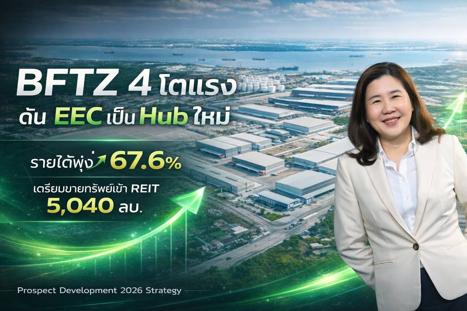 สำหรับปี 2569 บริษัทวางกลยุทธ์ “Industrial Hub-Driven Growth Model” โดยใช้โครงการแฟลกชิปอย่าง BFTZ 1 บางนา–ตราด กม.23 และ BFTZ 4 บางปะกง เป็นศูนย์กลางสร้างคลัสเตอร์อุตสาหกรรม เชื่อมโยงโลจิสติกส์ ท่าเรือ และสนามบิน เพื่อรองรับผู้ประกอบการทั้งในและต่างประเทศ
