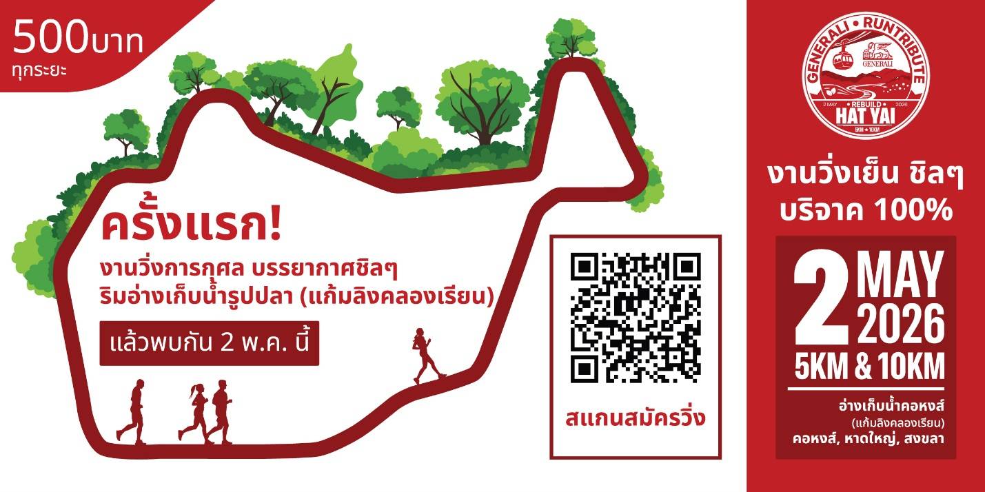 เจนเนอราลี่ ไทยแลนด์ เดินหน้าตอกย้ำบทบาทองค์กรที่เคียงข้างสังคมไทย เปิดตัวกิจกรรม “GENERALI RUNTRIBUTE: REBUILD HAT YAI” งานวิ่งการกุศลที่ไม่ได้เป็นเพียงกิจกรรมเพื่อสุขภาพ แต่เป็นกลไกสำคัญในการฟื้นฟูชุมชนหาดใหญ่ จังหวัดสงขลา หลังเผชิญผลกระทบจากอุทกภัยใหญ่ โดยใช้ “พลังของนักวิ่ง” เป็นแรงขับเคลื่อนการเปลี่ยนแปลง