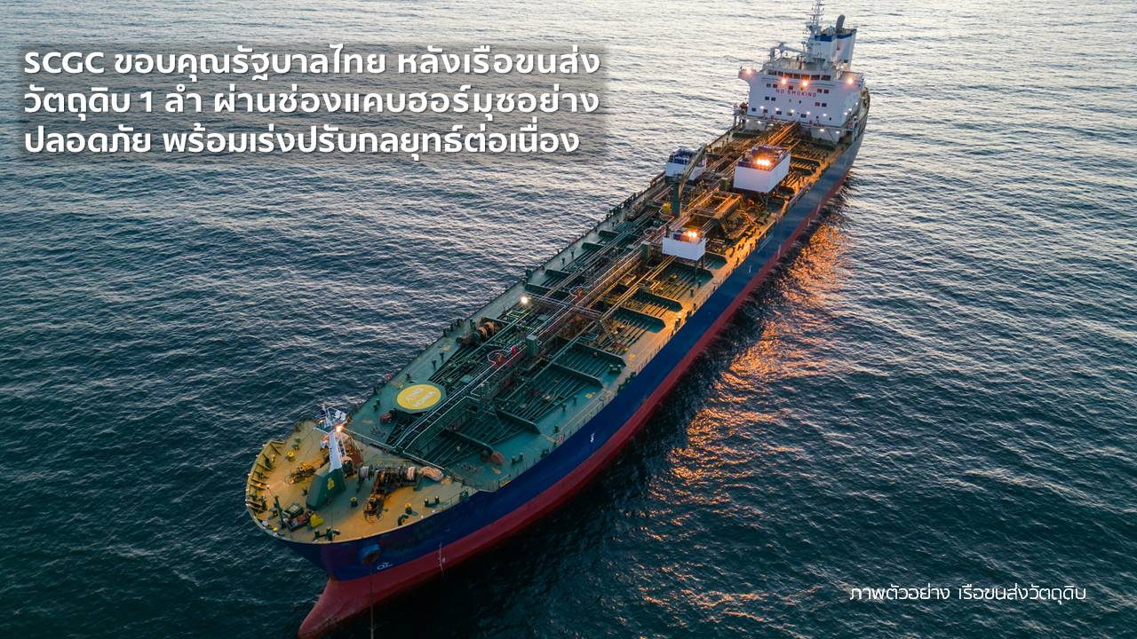 กรุงเทพฯ – 20 เมษายน 2569 — SCGC เปิดเผยความคืบหน้าการจัดหาวัตถุดิบสำหรับการผลิตเม็ดพลาสติก หลังเรือขนส่งแนฟทา 1 ลำ จากทั้งหมด 2 ลำ ที่ติดค้างบริเวณช่องแคบฮอร์มุซ สามารถเดินทางออกจากพื้นที่ได้อย่างปลอดภัยแล้ว ภายหลังการเจรจาของภาครัฐไทย