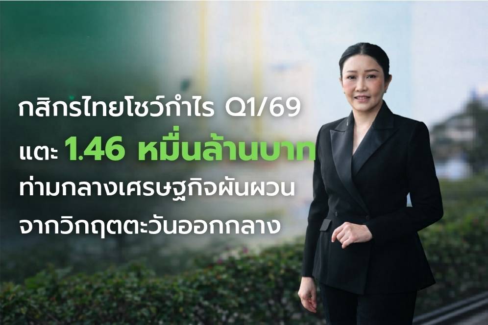 ธนาคารกสิกรไทย แจ้งผลประกอบการไตรมาส 1 ปี 2569 กำไรสุทธิ 14,667 ล้านบาท เพิ่มขึ้น 6.35% จากช่วงเดียวกันของปีก่อน ท่ามกลางเศรษฐกิจไทยที่ชะลอตัวจากแรงกดดันด้านภูมิรัฐศาสตร์และความไม่แน่นอนในตะวันออกกลาง