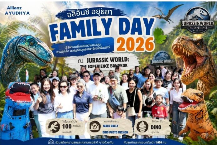 กรุงเทพฯ – บริษัท อลิอันซ์ อยุธยา ประกันชีวิต จำกัด (มหาชน) เดินหน้าสร้างประสบการณ์สุดพิเศษให้กับลูกค้า จัดกิจกรรม “Family Day 2026” ชวนครอบครัวลูกค้าร่วมผจญภัยในอาณาจักรไดโนเสาร์ ณ Jurassic World: The Experience Bangkok แหล่งท่องเที่ยวธีมพาร์คชื่อดังใจกลาง Bangkok โดยมีผู้เข้าร่วมงานกว่า 1,000 คน ท่ามกลางบรรยากาศอบอุ่น