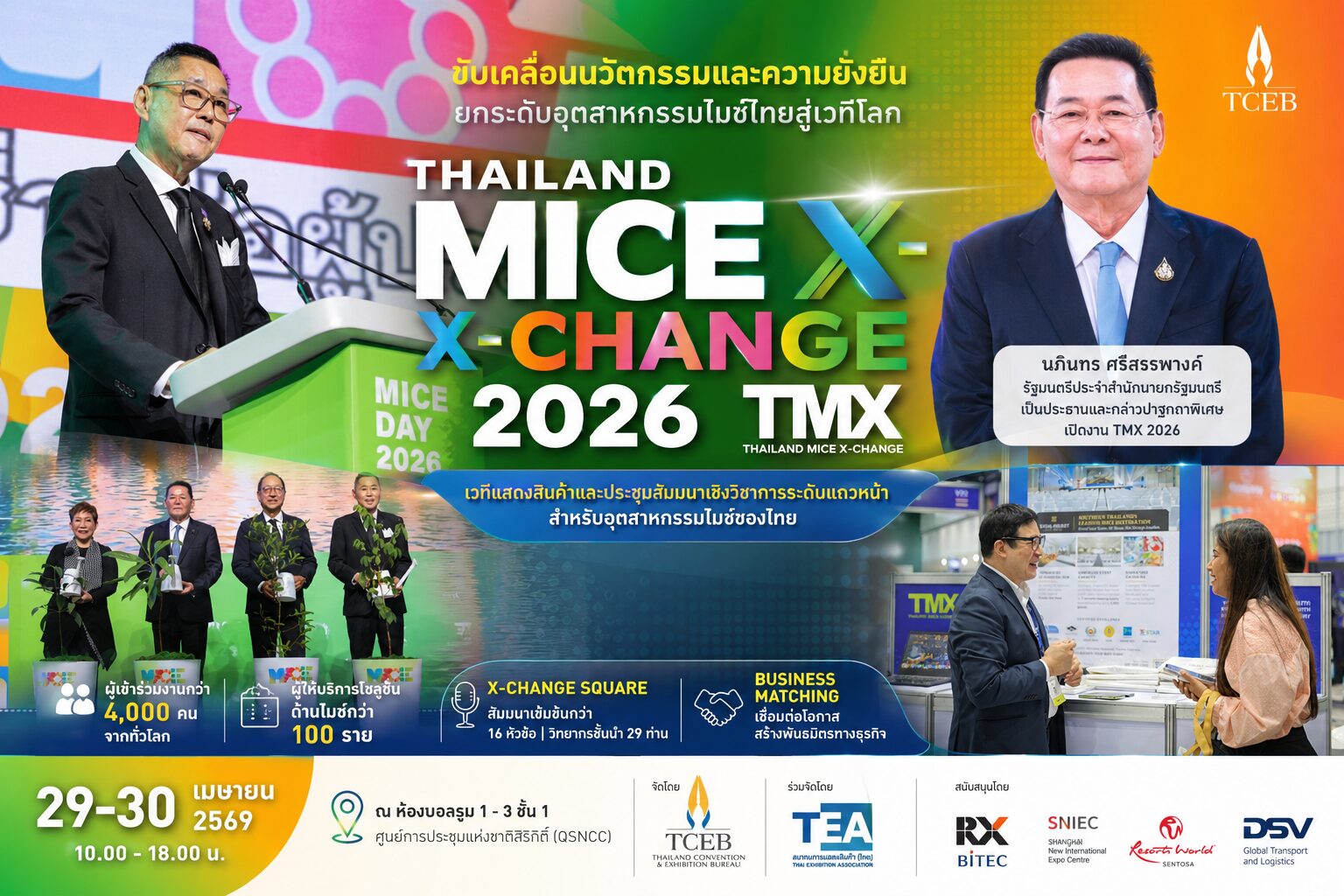 งาน Thailand MICE X-Change 2026 (TMX 2026) จัดขึ้นระหว่างวันที่ 29-30 เมษายน 2569 ระหว่างเวลา 10.00-18.00 น. ณ ห้องบอลรูม 1 – 3 ชั้น 1 ศูนย์การประชุมแห่งชาติสิริกิติ์(QSNCC)